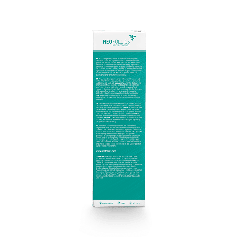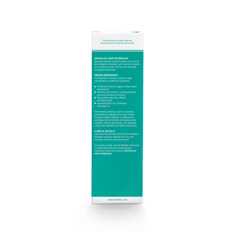 Das Neofollics Hair Growth Shampoo wurde entwickelt, um eine effektive, sichere und benutzerfreundliche Lösung für Männer und Frauen mit Haarausfall zu bieten. Es enthält 1% Pirocton-Olamin sowie 12 stimulierende Inhaltsstoffe, die das Haarwachstum anregen und Haarausfall reduzieren. Innerhalb von 90 - 180 Tagen reduziert das Shampoo Haarausfall, verbessert die Haardichte und die allgemeine Gesundheit des Haares. Gleichzeitig pflegt das Shampoo die Kopfhaut, beruhigt sie und schafft die Grundlage für ein gesundes Haarwachstum.