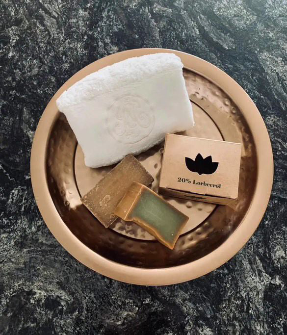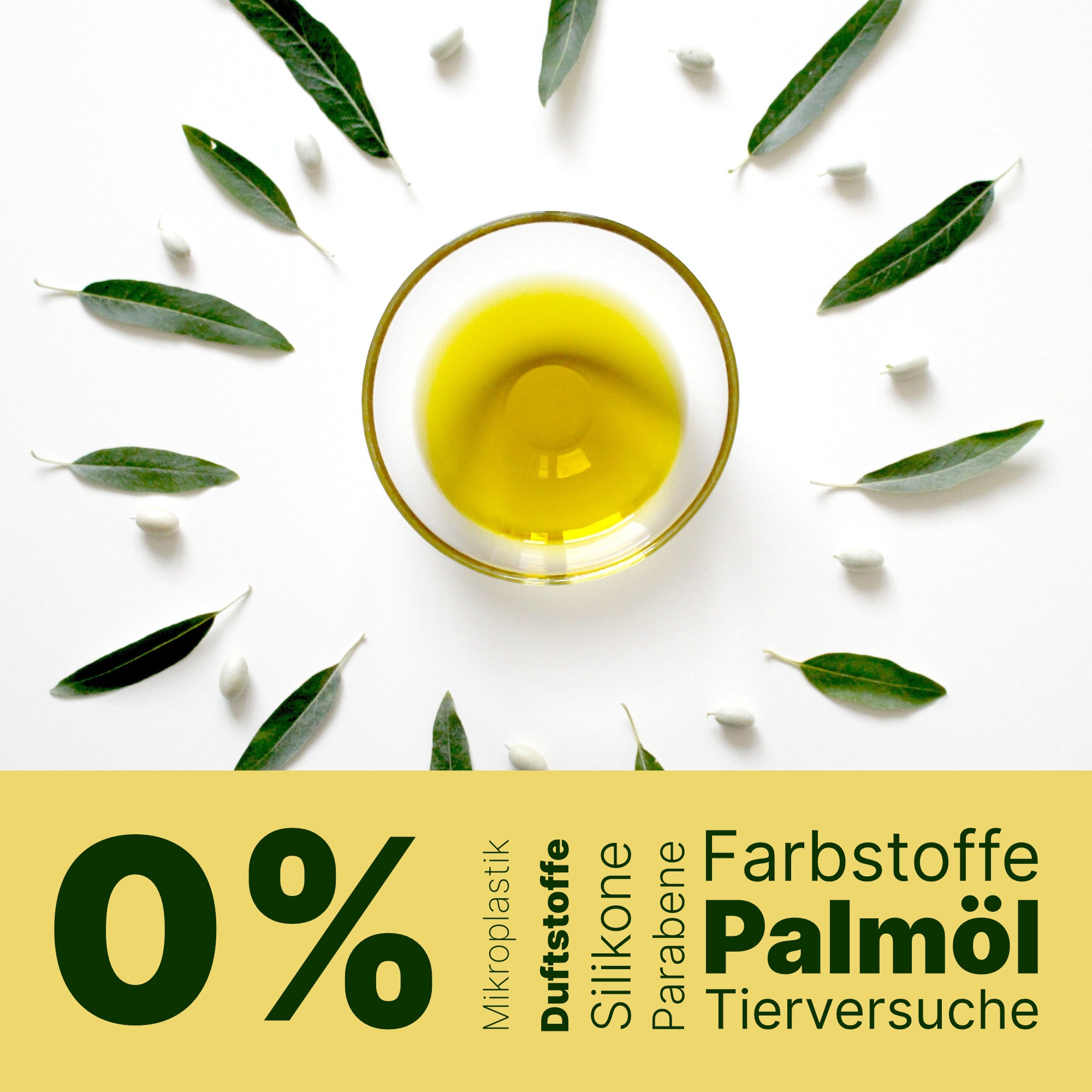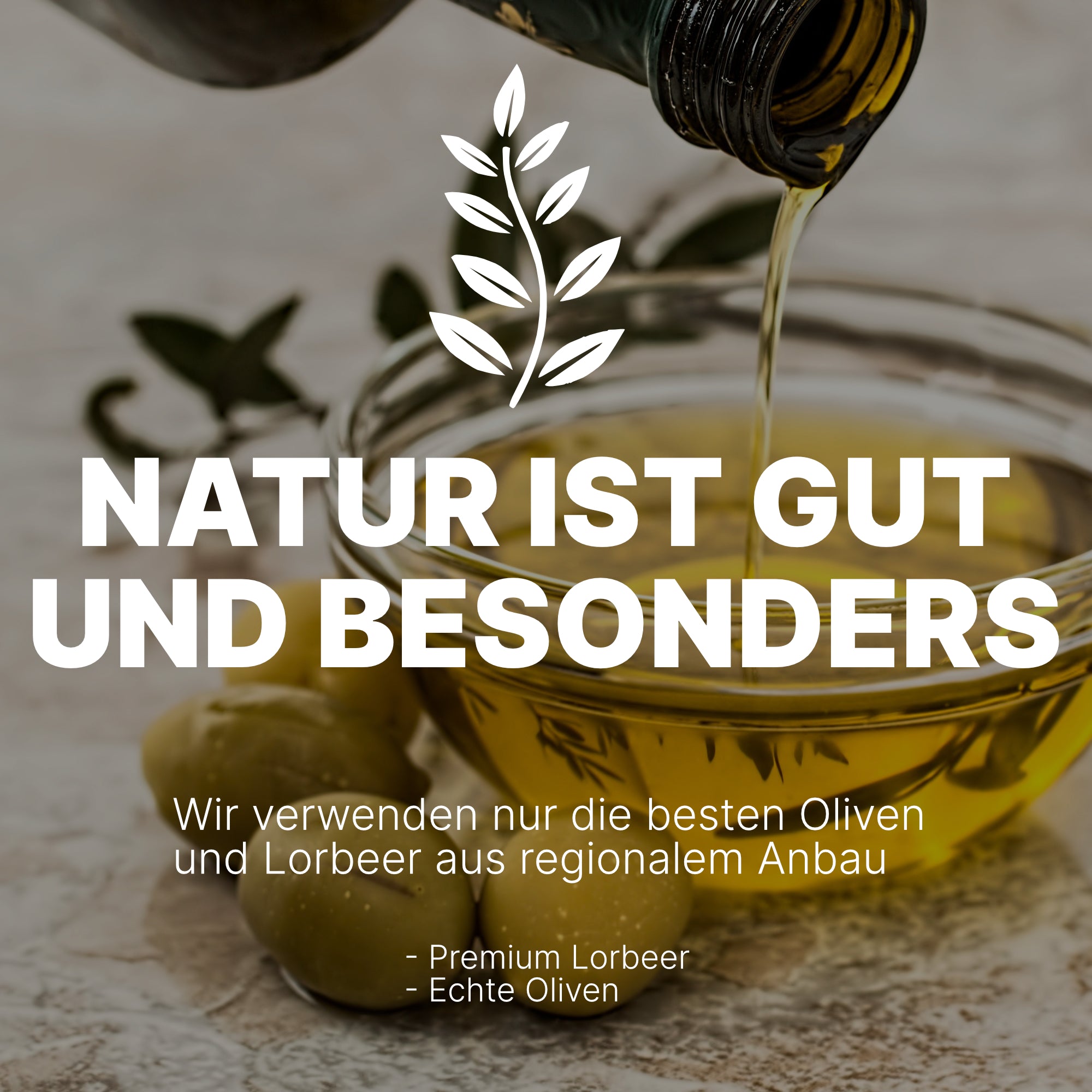 Inhaltsstoffe: Olivenöl, Lorbeeröl, Wasser, Natriumhydroxid