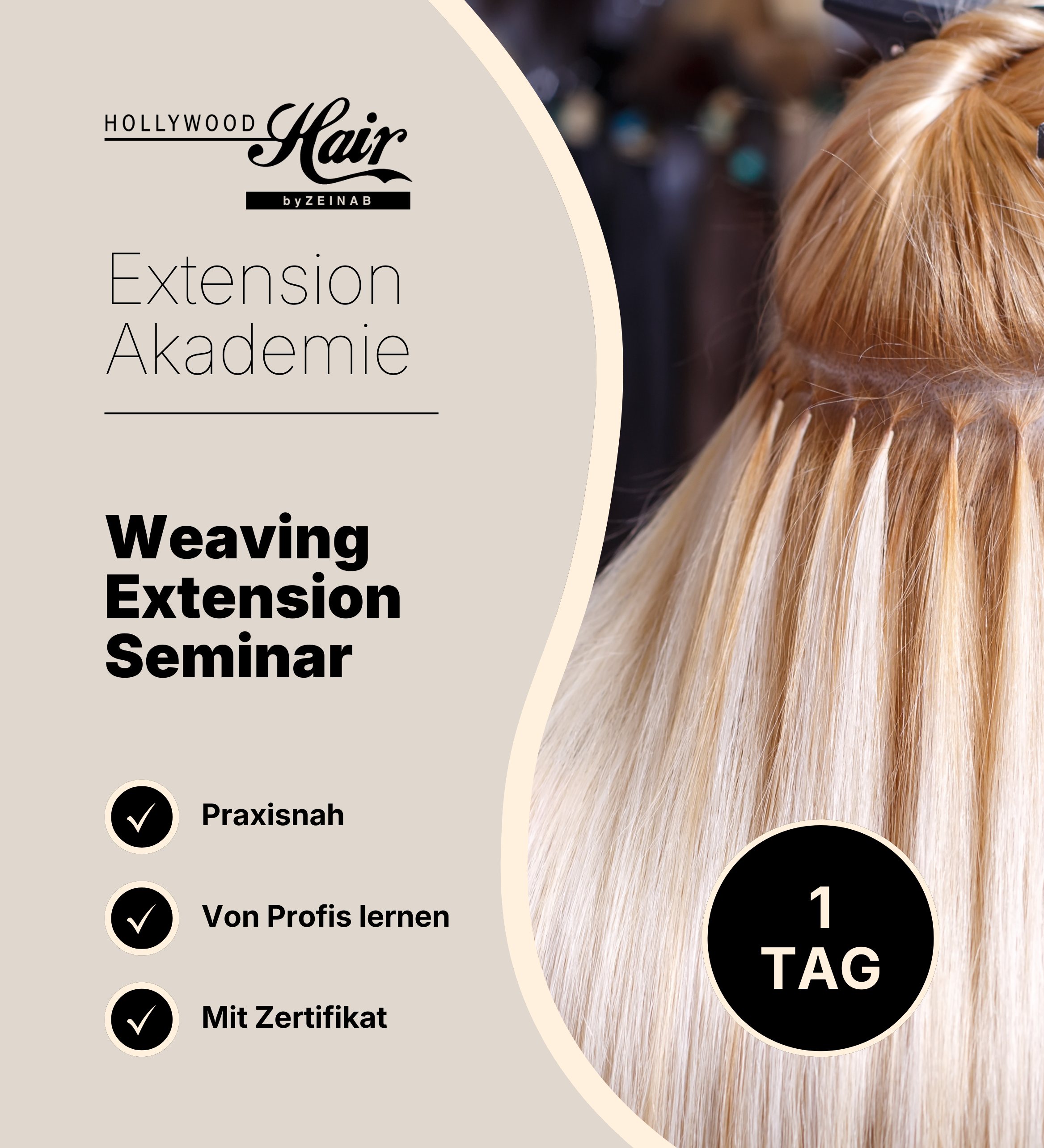 Willkommen zum innovativen Weaving Methode Seminar der Hollywood Hair by Zeinab Akademie! Dieses umfassende Training richtet sich an Friseure, Hairstylisten und Beauty-Profis, die ihre Fähigkeiten in der Haarverlängerung vertiefen möchten. Entdecken Sie die kreative und effektive Weaving Methode, um Ihren Kund:innen volles, langes und stylisches Haar zu verleihen – unkompliziert und anpassbar!