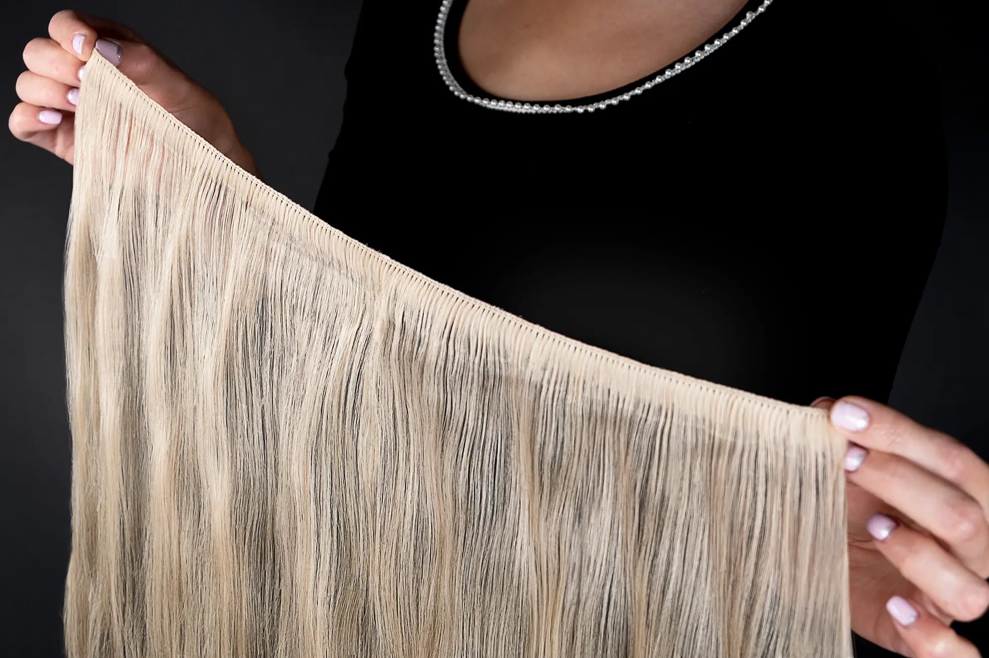 Наши утки не только безопасны и универсальны, но и чрезвычайно удобны в ношении. Благодаря плоскому и тонкому шву с невидимым возвратом они плотно прилегают к коже головы и обеспечивают максимальный комфорт, не царапая. Благодаря кератиновому уплотнению нити можно индивидуально регулировать и создавать идеальный вид.